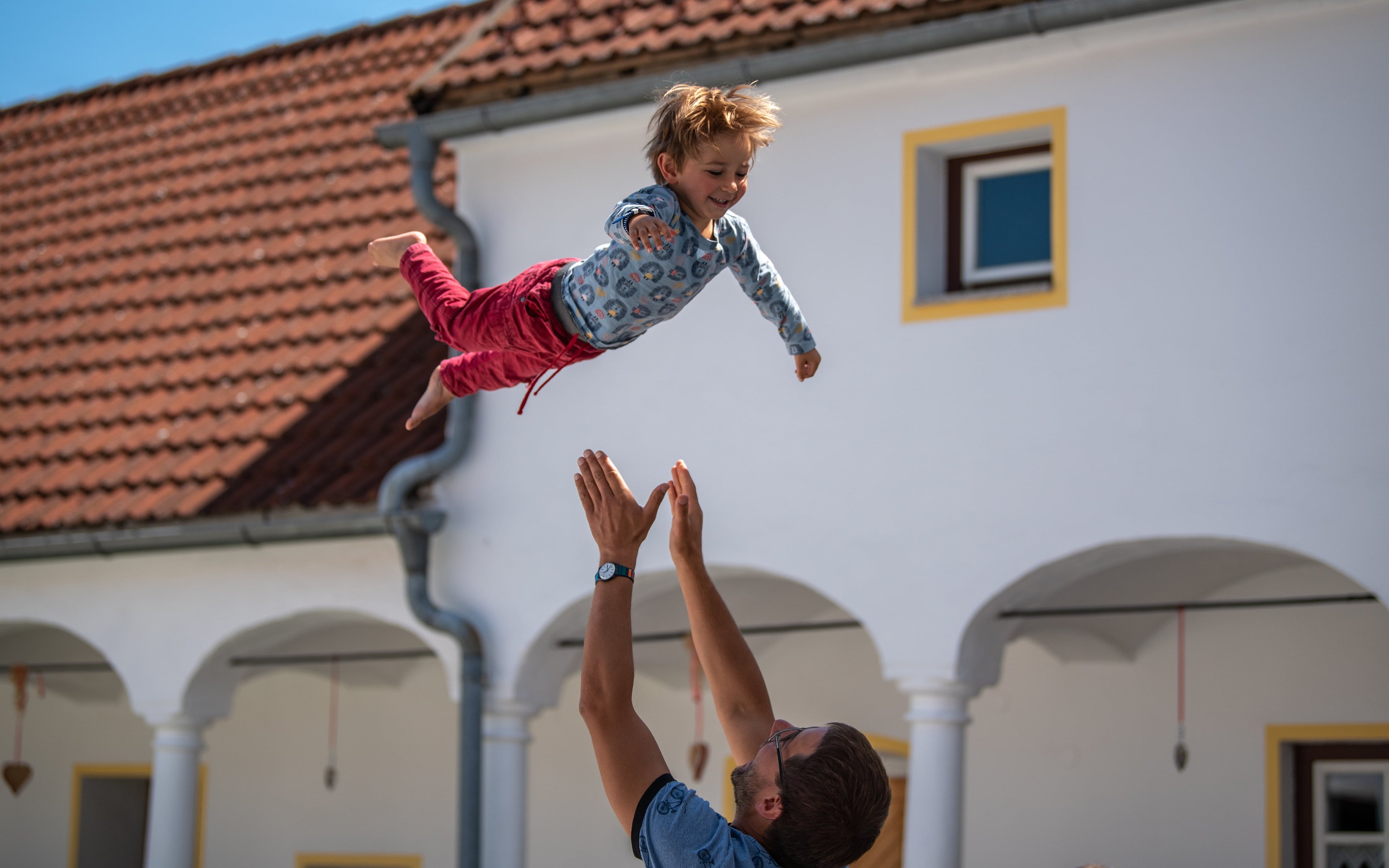 Jeder in der Familie packt mit an. So hinterlassen Jung und Alt ihre Abdrücke auf jeder Flasche Wein, die unser Haus verlässt.